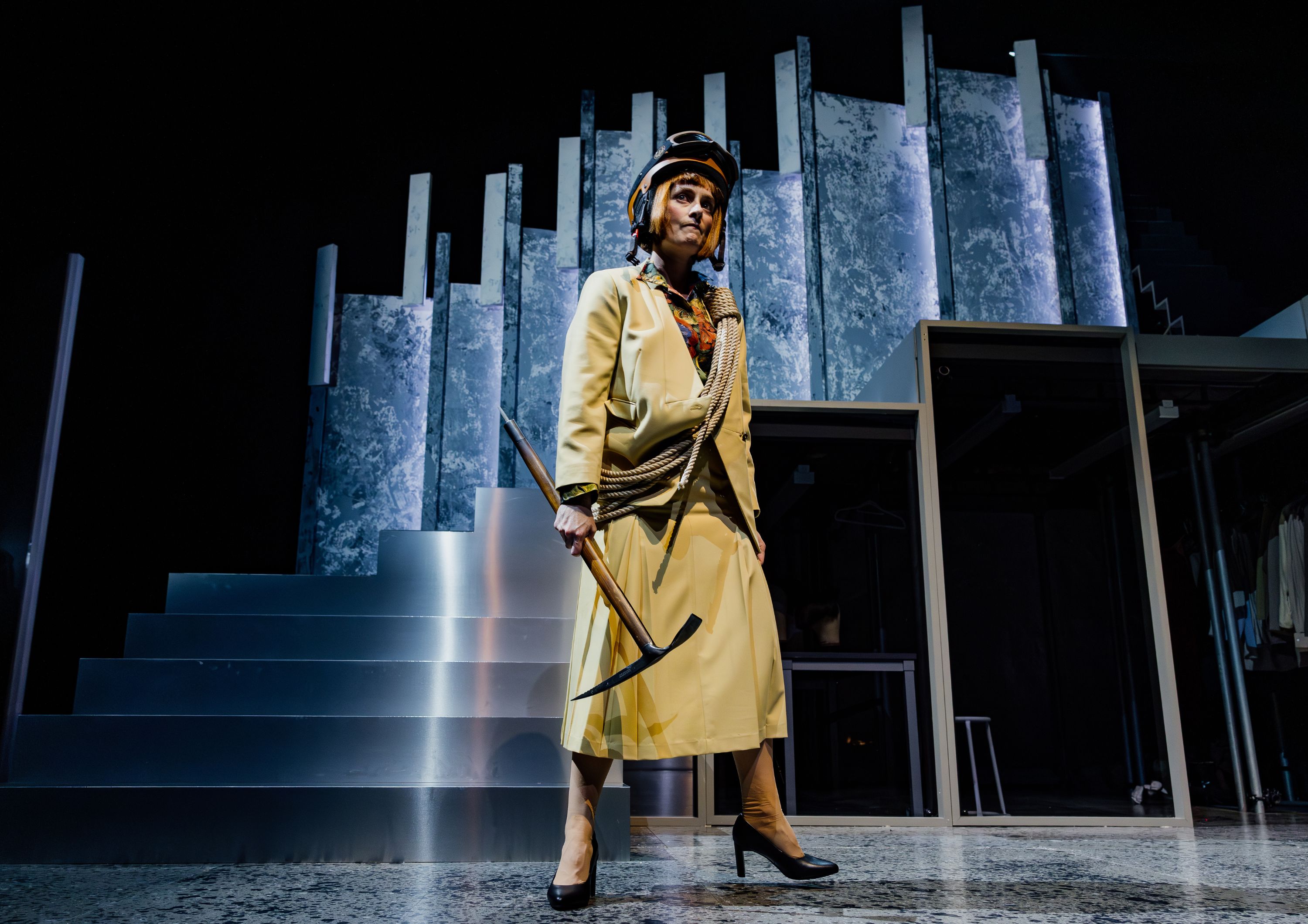 Helen is played in her later years by the luminous Jennifer Ward-Lealand CNZM. The older and the younger Helens deconstruct her personal and political lives over the past 50 years, satirically framed through the lens of six key outfits.